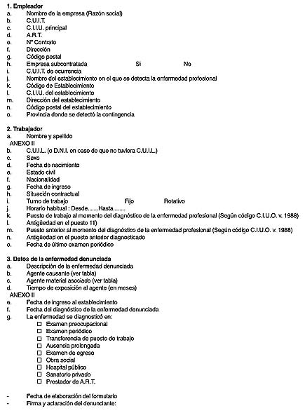 Es el instrumento por medio del cual la ART o el Empleador Autoasegurado, denuncia una Enfermedad Profesional.