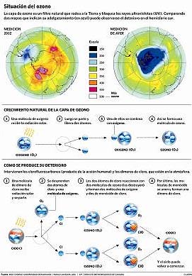No se debe al incumplimiento del Protocolo de Montreal. “La cantidad de cloro atmosférico no ha aumentado desde 1997 y se está estabilizando. Pero llevará de 50 a 60 años reducirla a los niveles de 1980”, señala el doctor Pablo Canziani, investigador del Conicet y director del programa de Estudios Atmosféricos de la Universidad Católica Argentina. “Lo que estamos viendo ahora -agrega- es que el pico de daño a la capa de ozono está siendo modulado por el clima. Desde 1999 hay una gran variabilidad de un año a otro, en respuesta a una mayor variabilidad del sistema dinámico atmosférico, lo que podría estar asociado a todos los procesos de cambio generados por el hombre”.