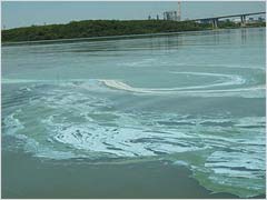 En Gualeguaychú denunciaron la aparición de una mancha blanca, amarilla y verde en la zona del muelle de la pastera y hablaron de derrame. Pero el ministro uruguayo de Medio Ambiente asegura que se trata de algas.