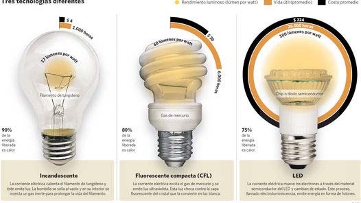 Sin las lámparas incandescentes más potentes en las góndolas locales (muchas ya no se consiguen) los hogares estarán obligados a optar por alternativas . En el mercado se consiguen las fluorescentes compactas (conocidas como “de bajo consumo”), las más modernas basadas en diodos emisores de luz (LED) y las incandescentes halógenas (de las alternativas, éstas son las más parecidas a las incandescentes tradicionales).