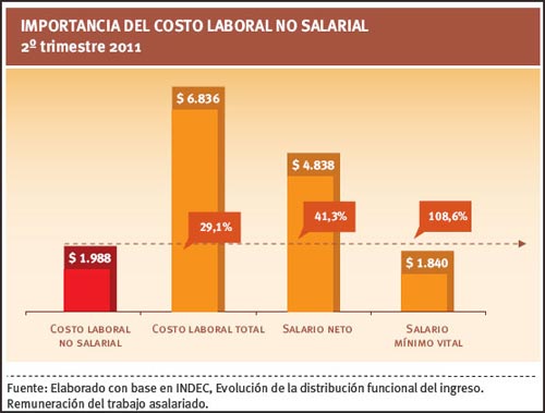 "En el segundo trimestre de 2011, para una remuneración bruta promedio del sector privado de algo más de $5.500, el costo no salarial (incluidos los aportes patronales) fue de $2.000 ", puso como ejemplo el informe de la consultora que dirige el economista Ernesto Kritz.