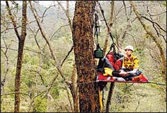 ![]() Protesta. Un activista de greenpeace "viviendo" en un árbol de Salta. |