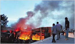 ![]() Humo Denso. Las llamas consumen las instalaciones, ayer. La columna de Humo se podia ver desde la capital. |