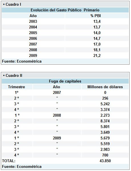 Si bien durante todo el periodo del gobierno de los Kirchner las erogaciones corrientes aumentan de manera sostenida año tras año, este proceso tiende a acelerarse en los últimos tiempos: de los 7,8 puntos del PBI que subió el gasto primario a lo largo de la administración kirchnerista, casi la mitad de este incremento -3,1 puntos - se registró durante el 2009.
