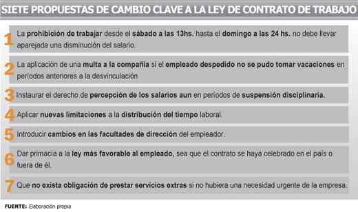 Así las cosas, en medio de la polémica y frente a la expectativa que gira en torno a su aprobación, las iniciativas que intentan reformar la Ley de Contrato de Trabajo apuntan a: