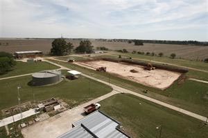 ![]() Vista aérea del terreno donde ya comenzaron a construirse los cimientos de la minicentral. Foto: Emiliano Lasalvia |