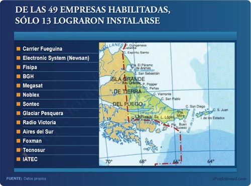 En base a estas precisiones, iProfesional.com consultó los registros de importaciones -en sus capítulos 84, 85 y 90- de las aduanas provinciales y halló que, de los 49 nombres habilitados para construir una planta en ese territorio patagónico, apenas 13 se instalaron realmente desde 2005 al presente, a saber:
